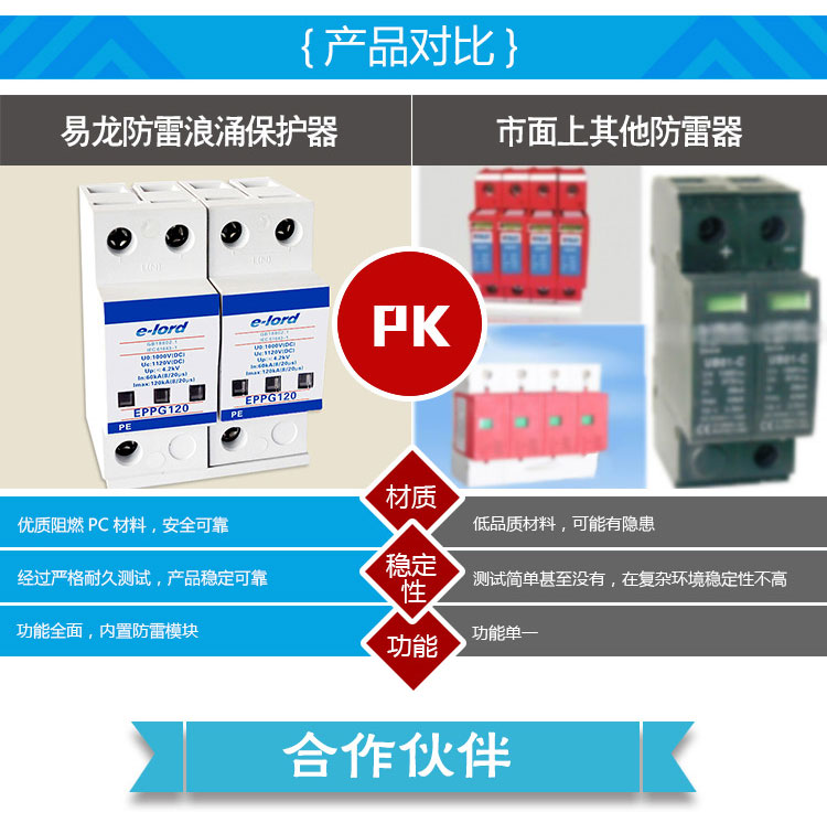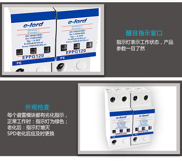 EPPG系列直流光伏電源浪涌保護(hù)器是由多個(gè)單片式限壓?jiǎn)卧M成,廣泛應(yīng)用于光伏直流1000V發(fā)電系統(tǒng)中,對(duì)太陽(yáng)能電池板,匯流箱、直流配電柜及光伏逆變器等系統(tǒng)配套設(shè)備進(jìn)行雷電感應(yīng)浪涌防護(hù),能有效防止由雷電感應(yīng)波和線路浪涌沖擊所造成的設(shè)備損壞,最大程度的保證了光伏發(fā)電系統(tǒng)的穩(wěn)定性和可靠性,保護(hù)光伏系統(tǒng)穩(wěn)定可靠地運(yùn)行。