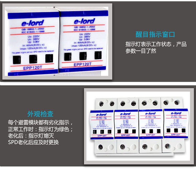 EPP系列交流型電源SPD是由多個(gè)單片式防雷芯片組成,針對(duì)不同配電系統(tǒng)所要求,可以自由組合成單相或三相保護(hù),防止感應(yīng)過(guò)電壓或操作過(guò)電壓對(duì)低壓用電設(shè)備的損壞